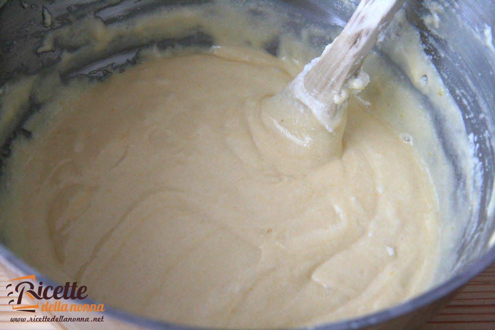 Per dare un buon aroma al ciambellone potete a questo punto unire all’impasto il contenuto di una bacca di vaniglia (o il contenuto di una fialetta d’aroma di vaniglia) oppure la buccia di un limone (o di un’arancia) grattugiata.